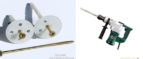 用電錘在鋁襯板的一端位置緊靠著保溫板上開的槽打上預留孔,預留孔分別間隔在地暖管兩側,管路鋪設好后,保溫釘蓋可以壓著水管和鋁襯板,然后固定上相應的保溫釘(直徑8x80-100mm),用錘子把螺絲釘敲入即可。