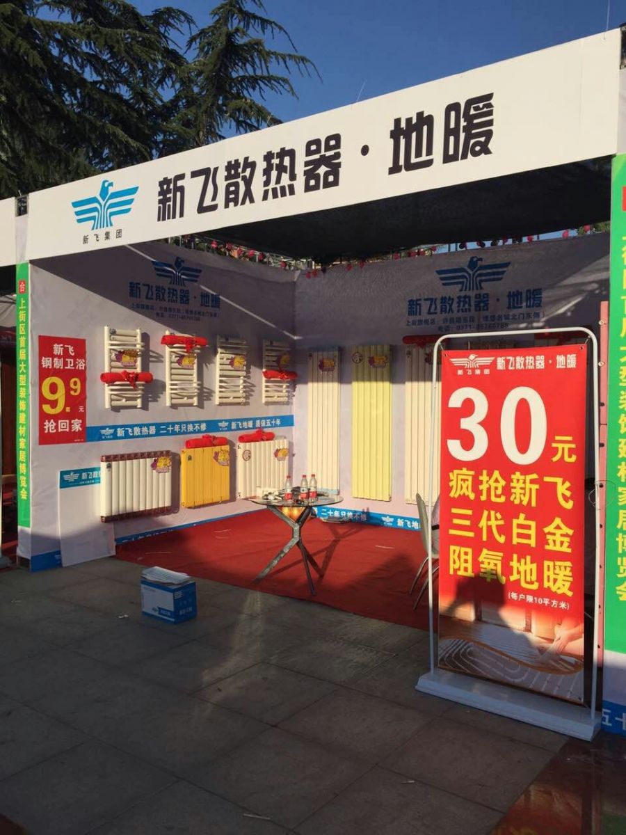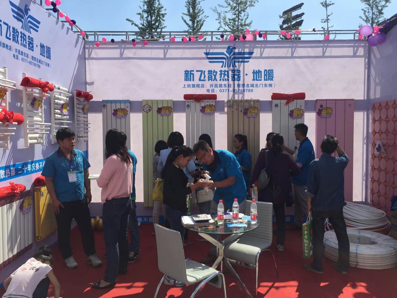 為響應(yīng)公司十一優(yōu)惠活動,鄭州市上街區(qū)代理商葛經(jīng)理于9月12日參加了“家合聯(lián)盟省錢大行動”,11日晚上工作人員趁著月色趕工搭建我們的產(chǎn)品展位,12日工作人員熱情洋溢的推廣新飛產(chǎn)品,在大家的共同努力下取得了一天簽訂56單的好成績,感謝工作人員的辛勤付出,感謝葛經(jīng)理將公司政策很好的推廣,感謝廣大業(yè)主的支持和信賴!