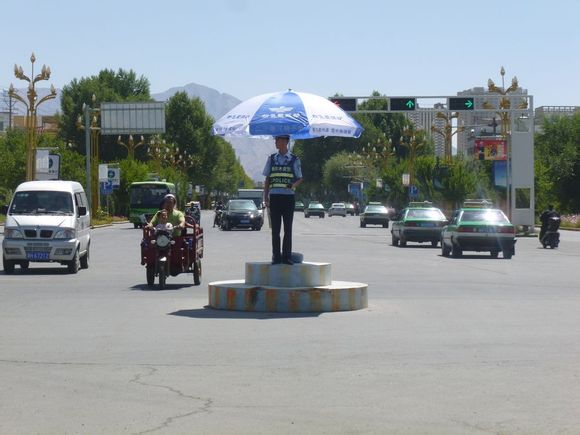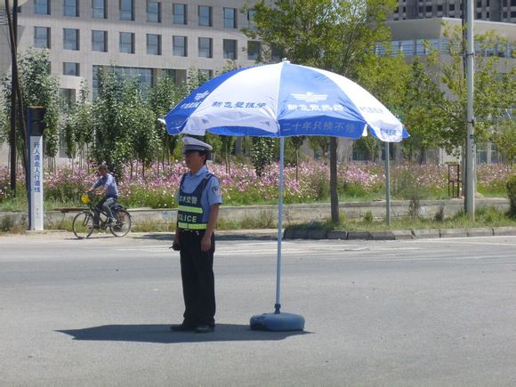 作為人民我們應該感謝他,格爾木市經銷商為他們送去了遮陽傘,警民共建和諧畫面!